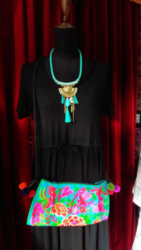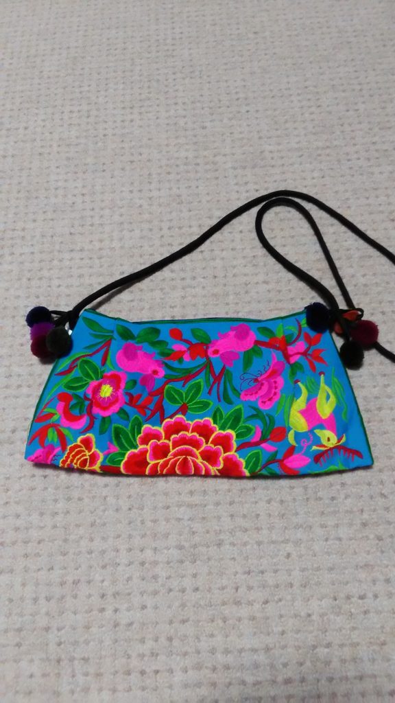 バンコクで見つけた、モン族のターコイズ×アニマル×ボンボンタイプ・ポシェット👜、ブルー×くま・キーホルダー🐻