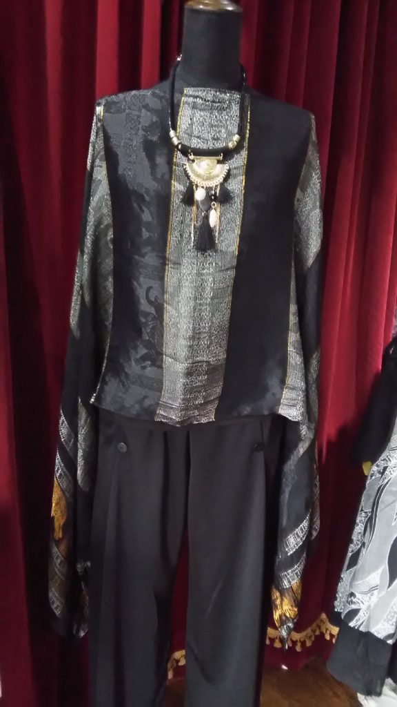 バンコクで見つけた、ヌアイさんオリジナルのタイシルク・ストールで作ったブラック×象・タイシルクポンチョ🐘