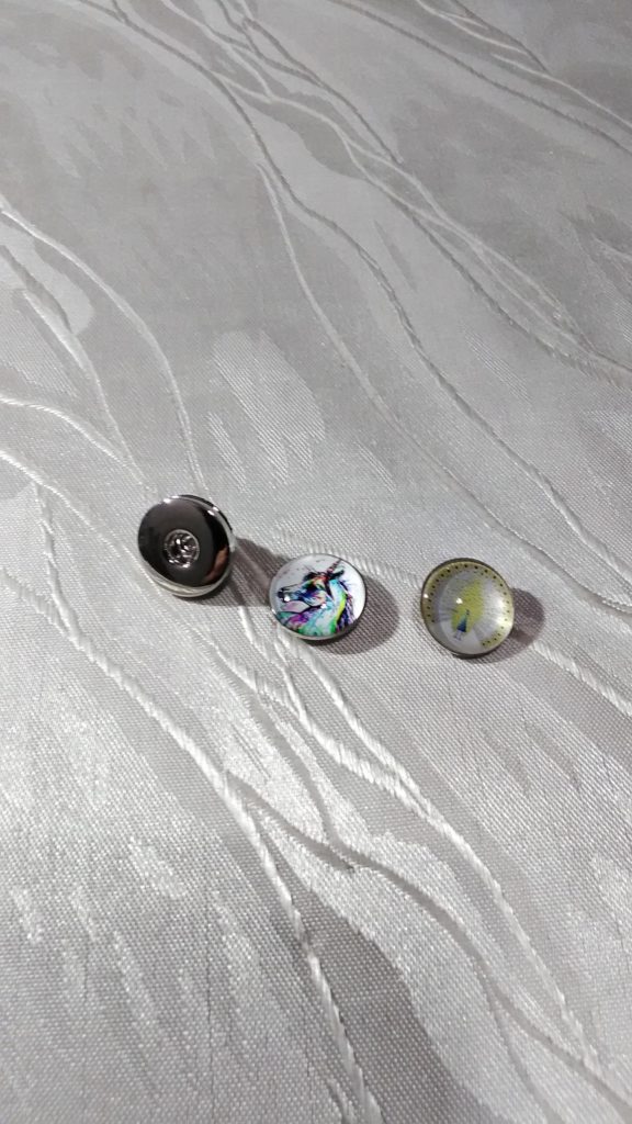 18ミリスナップボタン・ピンブローチと、あわせてユニコーン・スナップボタン、孔雀・スナップボタンをお買い上げくださいました💕