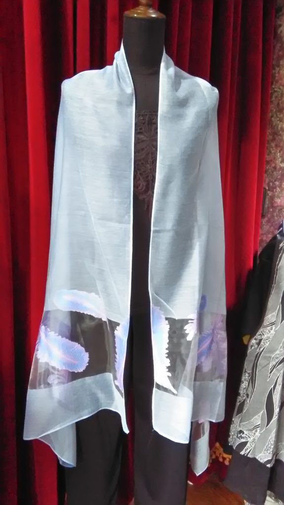 バンコクで見つけた、ライトブルー×フェザー・シルクストール🎵