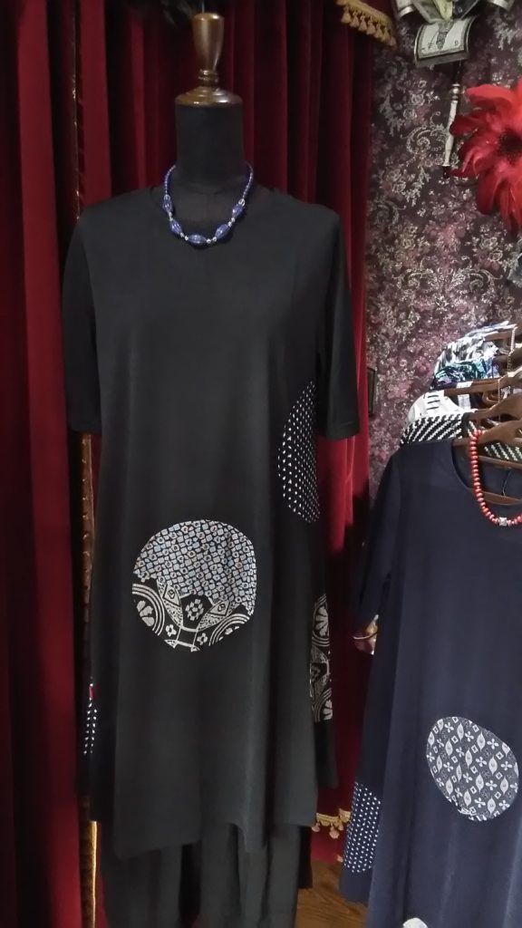 レッド×リーフ・ワンピース、ブラック×和柄ドット・ワンピース👗