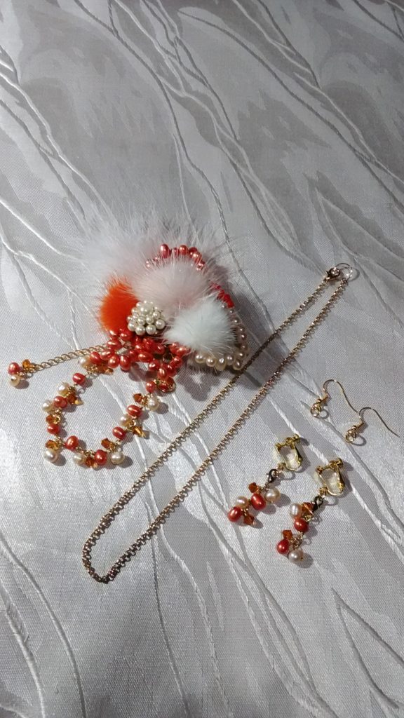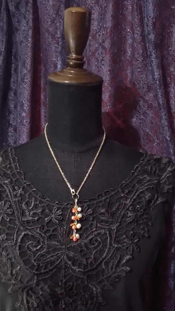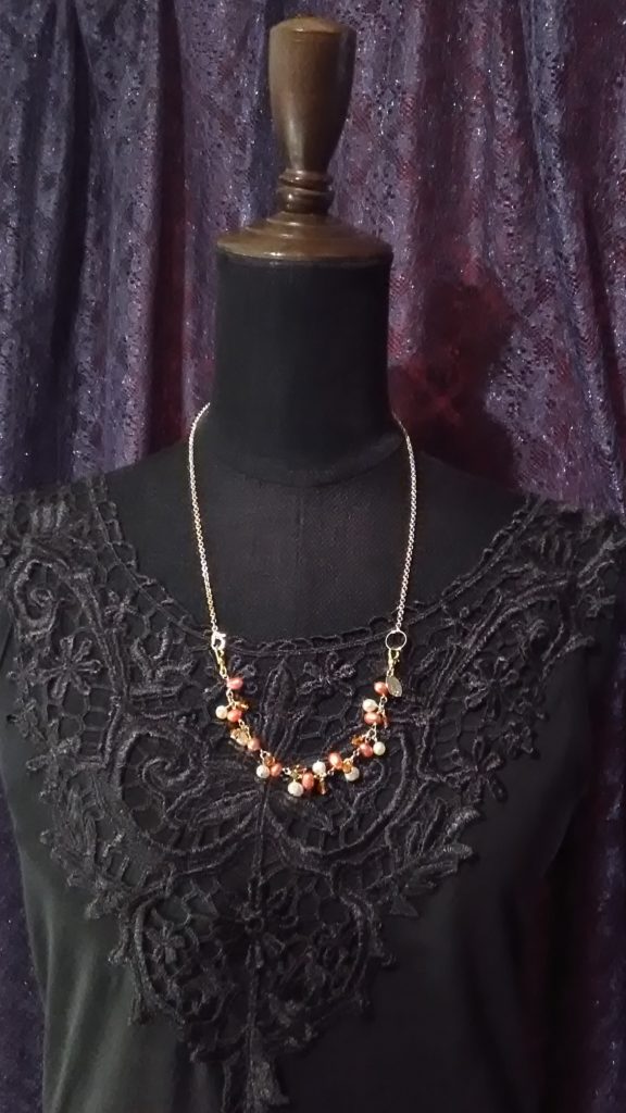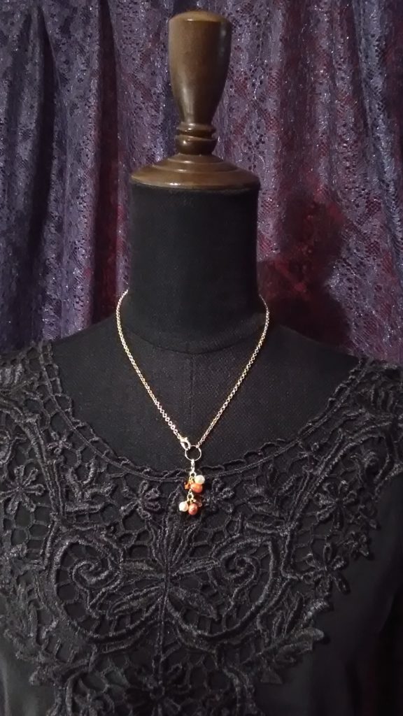 チェーンに、ブローチについているブレスレットをつけるとネックレスになります♪