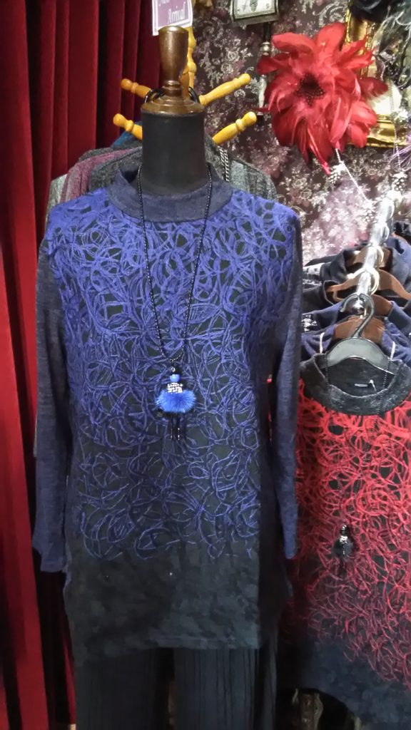 素敵なお客さま(Kさん)・2♪ oco-brand 2019年12月19日 0 15日のKさんのつづきです💕 ネイビー×刺繍グラデーション・チュニック、ブラック・パンツ、イエロー×フラワー・マフラーをお買い上げくださいました✨ つづく🎵