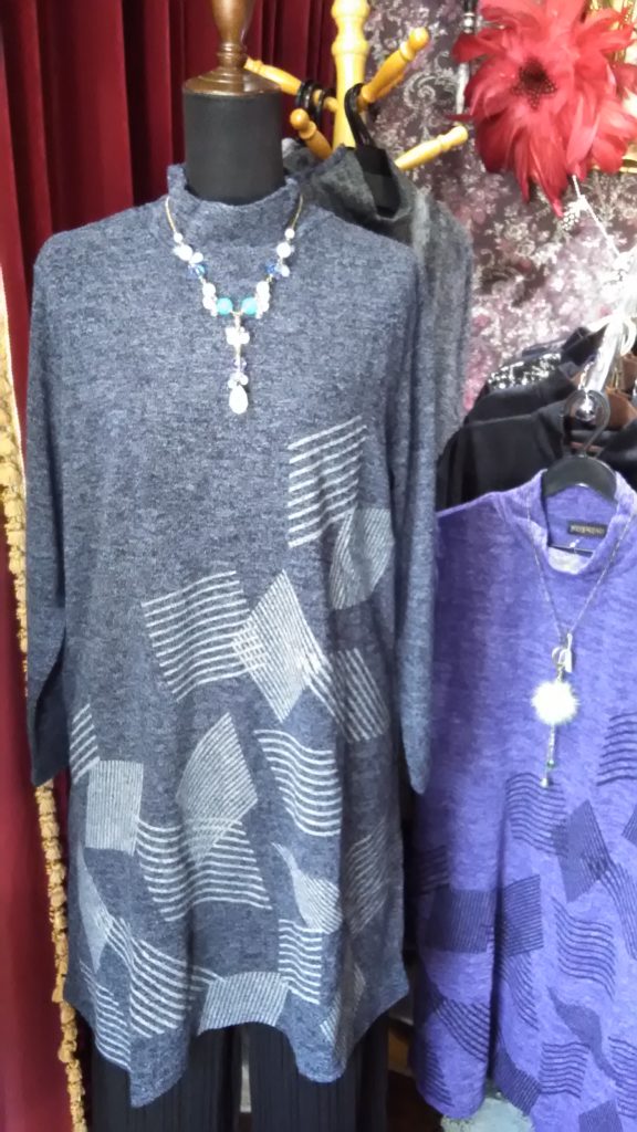 ネイビー×手描きドット・チュニック、ネイビー×ひし型・チュニック、ブラック・パンツをお買い上げくださいました😄