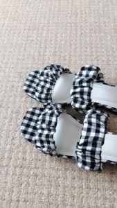 チェック×シャーリング・サンダル(L) oco-brand 2020年5月15日 0 チェック×シャーリング・サンダル(L) (SUCHL 020515) 販売価格(税別)¥3,000在庫状態 : 売り切れ サイズ L 24〜24.5センチ ヒールの高さ 2センチ 素材はサテン地です✨ シャーリングはデザインなので伸びません👍 売り切れ