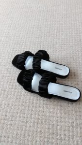 ブラック×シャーリング・サンダル(M) oco-brand 2020年5月15日 0 ブラック×シャーリング・サンダル(M) (SUBRM 020515) 販売価格(税別)¥3,000在庫状態 : 在庫有り サイズ M 23〜23.5センチ ヒールの高さ 2センチ 素材はサテン地です✨ シャーリングはデザインなので伸びません👍 数量