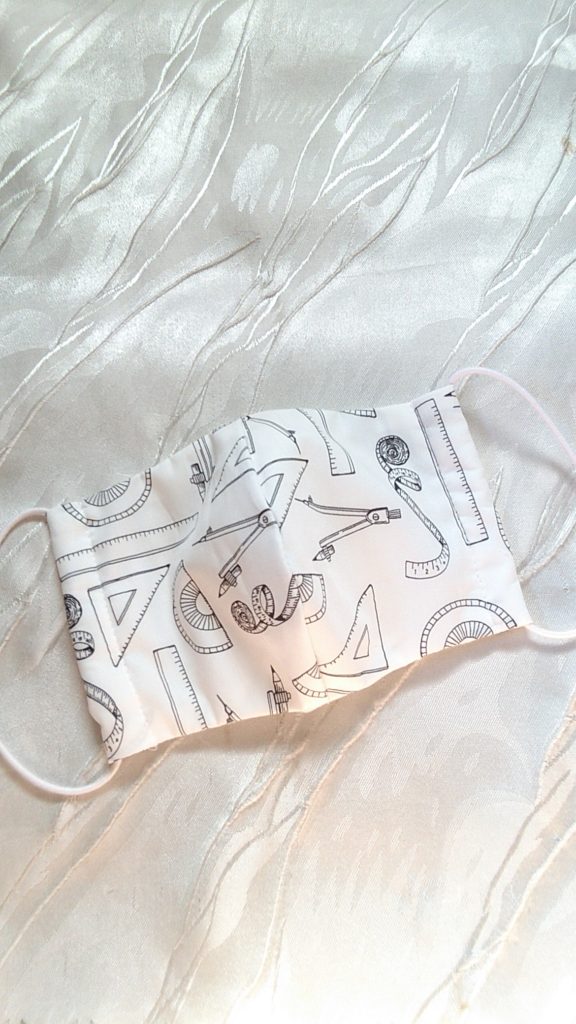 大人用のブラック×レースフラワー・マスクカバー、大人用のカーキ×英字・マスクカバー、大人用のホワイト×定規・マスクカバー😷
