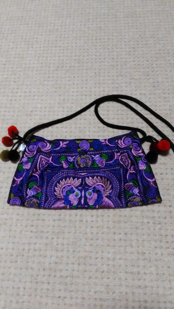 ご予約頂いていた、バンコクで仕入れたパープル柄・ショルダーバッグ、パープル×象・キーホルダー🐘