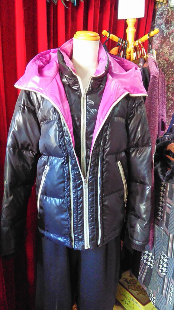 USEDのブラック×ピンク・リバーシブルダウンジャケット、ピンク×リボン・ニット、オレンジ・ニット、ストライプ・ニットカーディガン👗