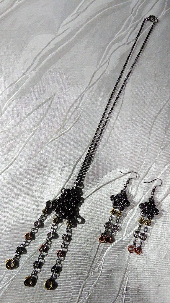 Kさんのオーダー(宇宙人・チェインメイルネックレス&ピアス)♪ oco-brand 2021年5月30日 0 そして、Kさん💕 オーダー頂いていた、チェインメイル・ネックレスとセットピアスをお買い上げくださいました♪ 宇宙人のようなデザインです👾 ありがとうございました✨ またお待ちしてますね🎵