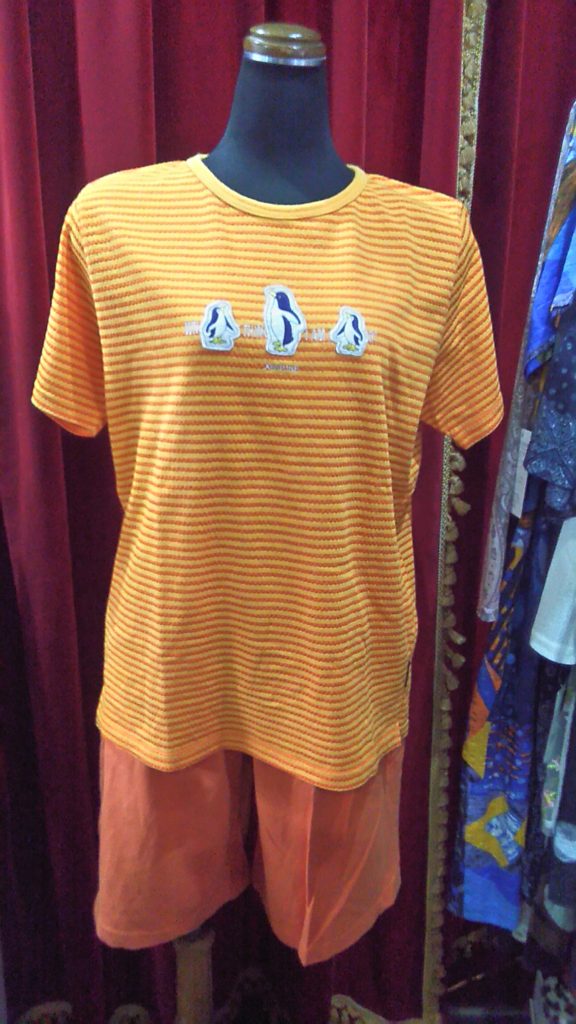 USEDのイェロー×フラワー・ワンピース、オレンジ×ストライプ・セットアップ、ブルー柄・ショートパンツ、新古品のホワイト×ターコイズブルー・リバーシブルショルダーバッグ👜