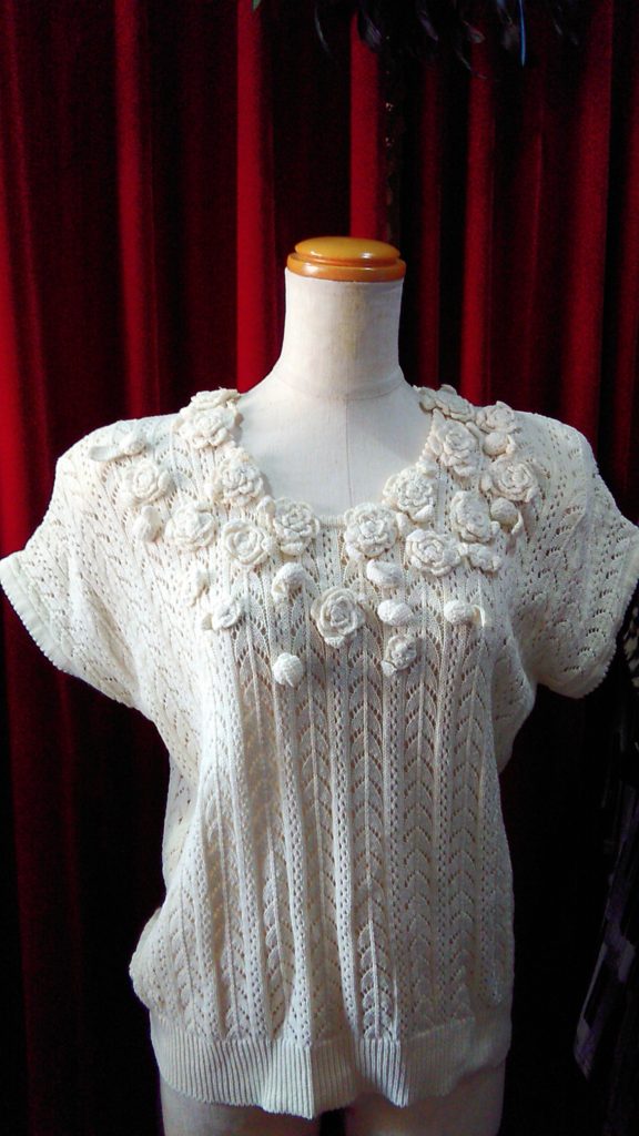 ご予約頂いていた、USEDのグリーン柄・ブラウス、インゲボルグのホワイト×アップリケフラワー・ニットをお買い上げくださいました💕