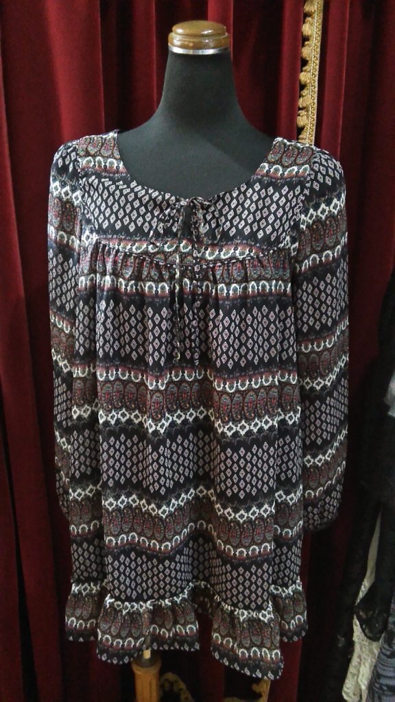 入荷したての新古品のレッド・ハーフコート、ブラック柄・シフォンチュニック👗