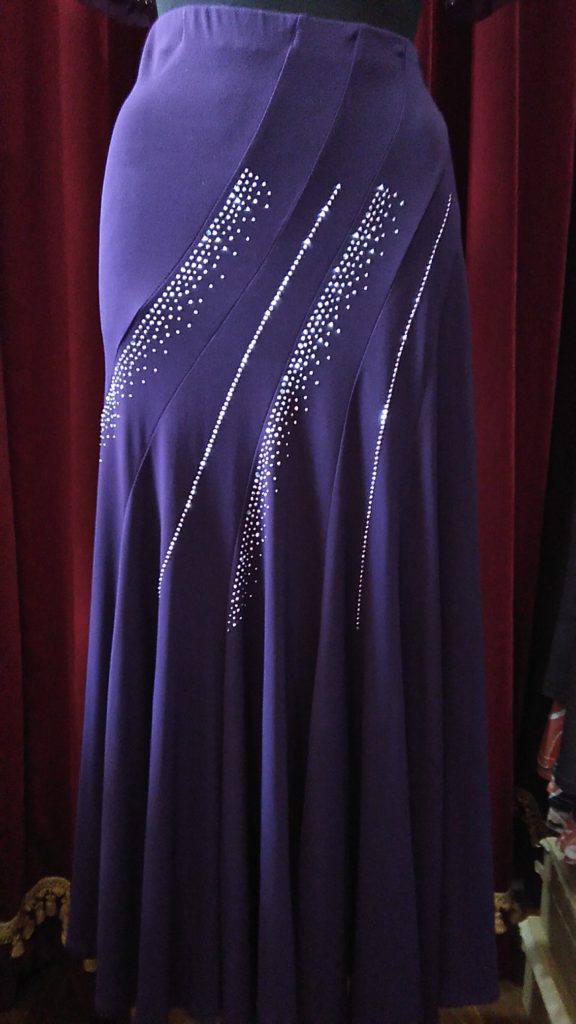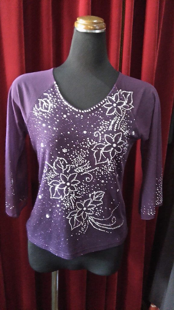 歌のステージにと、新古品のパープル×ビジュー・チュニック、パープル×ビジュー・ロングスカートをお買い上げくださいました👗