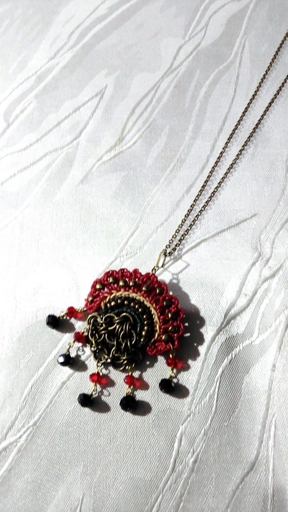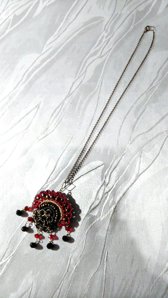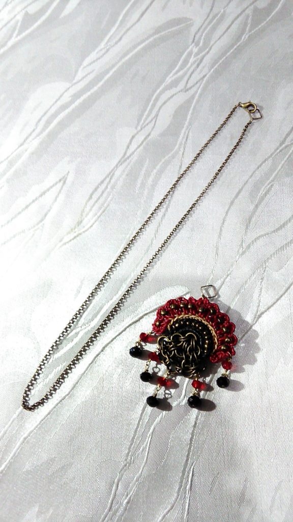 Aさんのオーダー(チェインメイル・ネックレス)♪ oco-brand 2021年10月11日 0 今日は、Aさんが遊びに来てくださいました♪ オーダー頂いていた、孔雀×チェインメイル・ネックレスをお買い上げくださいました💕 取り外せます♪ ブローチにもなります♪ トップはブローチにもなるようにとオーダー頂きました👍 2WAYで使えるのは便利でいいですよね😄 つづく💕