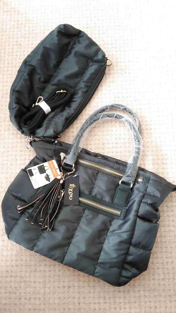 ポシェット付きの2WAYタイプ・モスグリーンの中綿バッグです👜