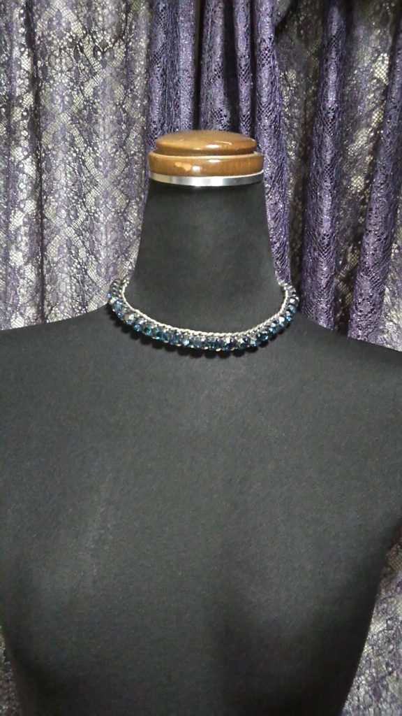 チョーカーが欲しいとの事で、ヴィンテージのネイビー×ラインストーン・ネックレスをリメイクさせて頂きました👍
