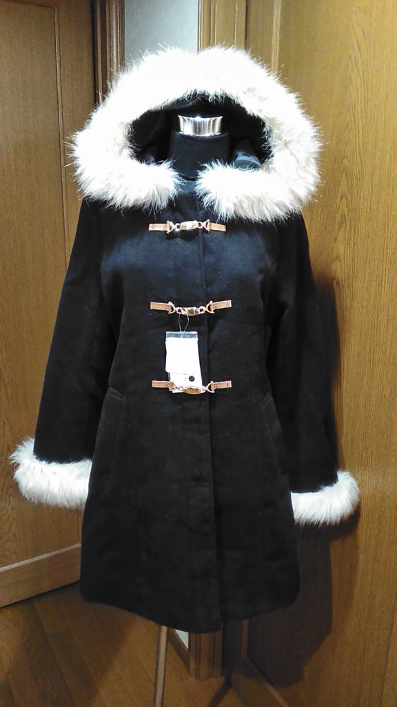 新品のブラック×ファー・ハーフコート、ホワイト・ニットロングワンピース