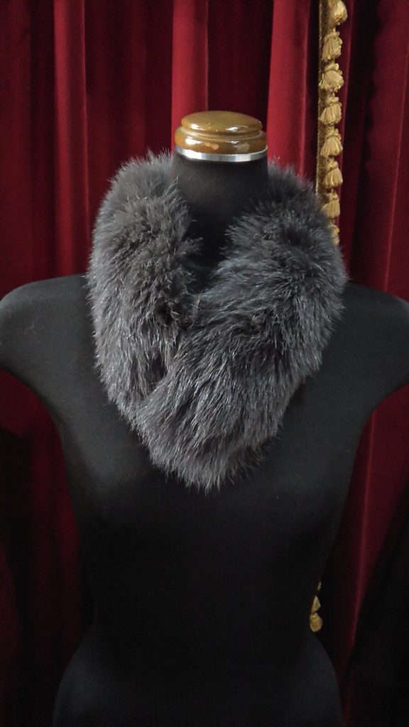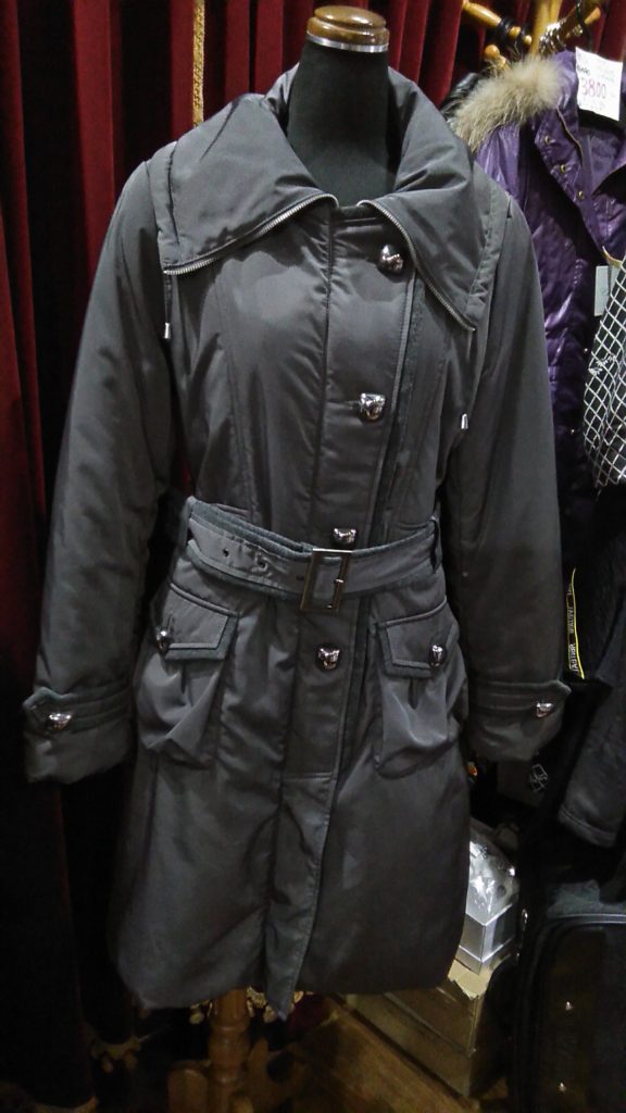 新古品のイタリア製のグレー・ハーフコート、USEDのブラウン・チュニック、ブラック柄・ニットチュニック、ブラック×ビジュー・チュールチュニック、グレー×FOX・ファーマフラーをお買い上げくださいました♪