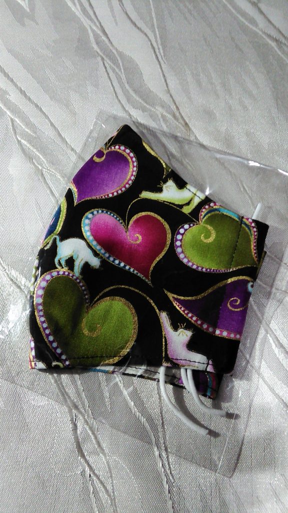 ピンク×CATラインストーン・マスク、ブラック×ローズラインストーンマスク、ブラック×CAT・布マスク、不織布デザインマスク2種類各3枚づつをお買い上げくださいました😷