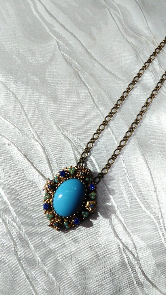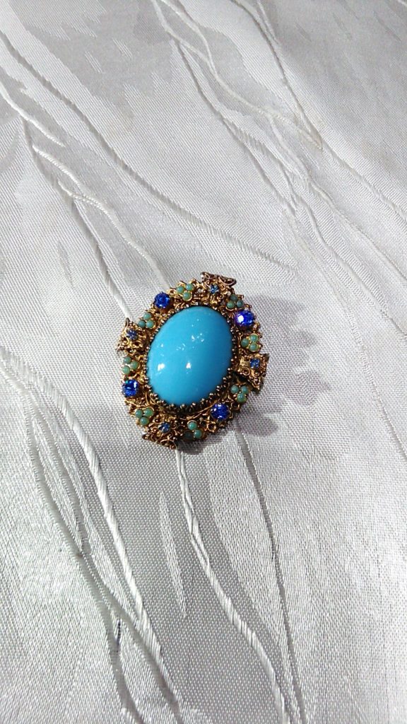 素敵なお客さま(Nさん)・3♪ oco-brand 2022年1月31日 0 Nさんのつづきです😊 ヴィンテージのターコイズブルー・ブローチ、ネックレスになるようにOCO.製作のチェーン、新品のグリーン柄・ゴブラン織りバッグをご予約頂きました♪ つづく💕