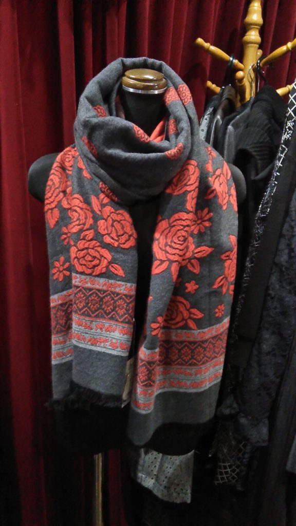 入荷したての新古品のブラック・トレンチコート、新品のグレー×レッドローズ・ストール、ベージュ柄・ストール、USEDのロードナイト・ネックレス、新品のブーケスタンドをお買い上げくださいました♪