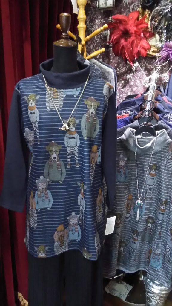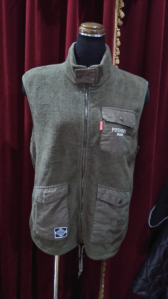 新品のネイビー×DOG・裏起毛チュニック、PUSHBOY JEANSのベージュ・ボアベスト、カーキ・ジャケット