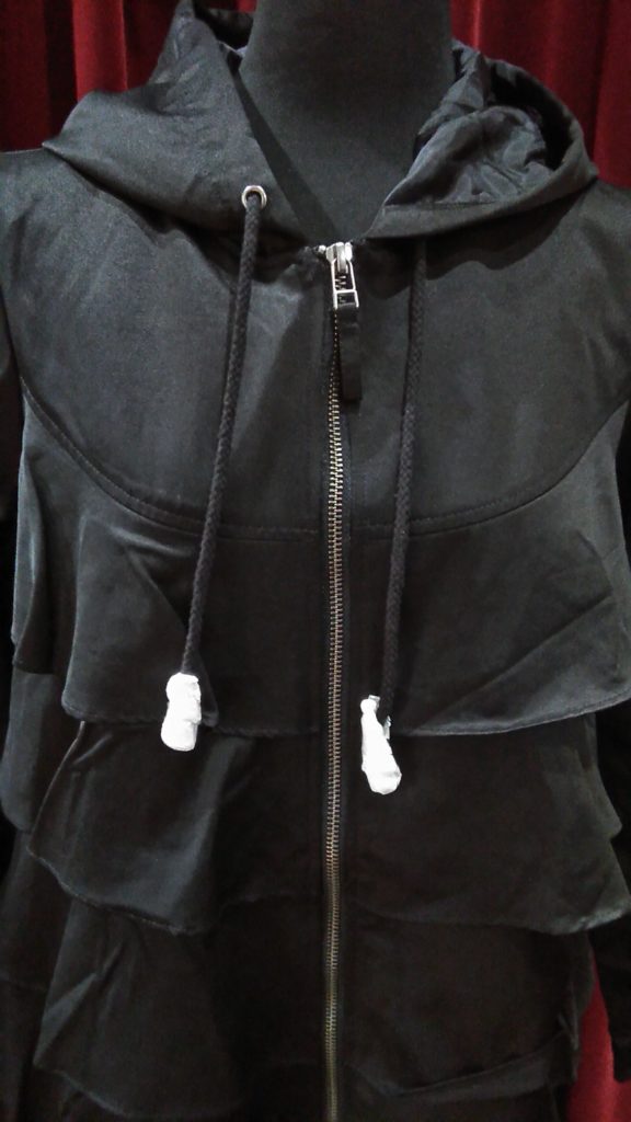 入荷したてのブラック×フリル・パーカーハーフコート、ブラック・ダウンフェザーベスト