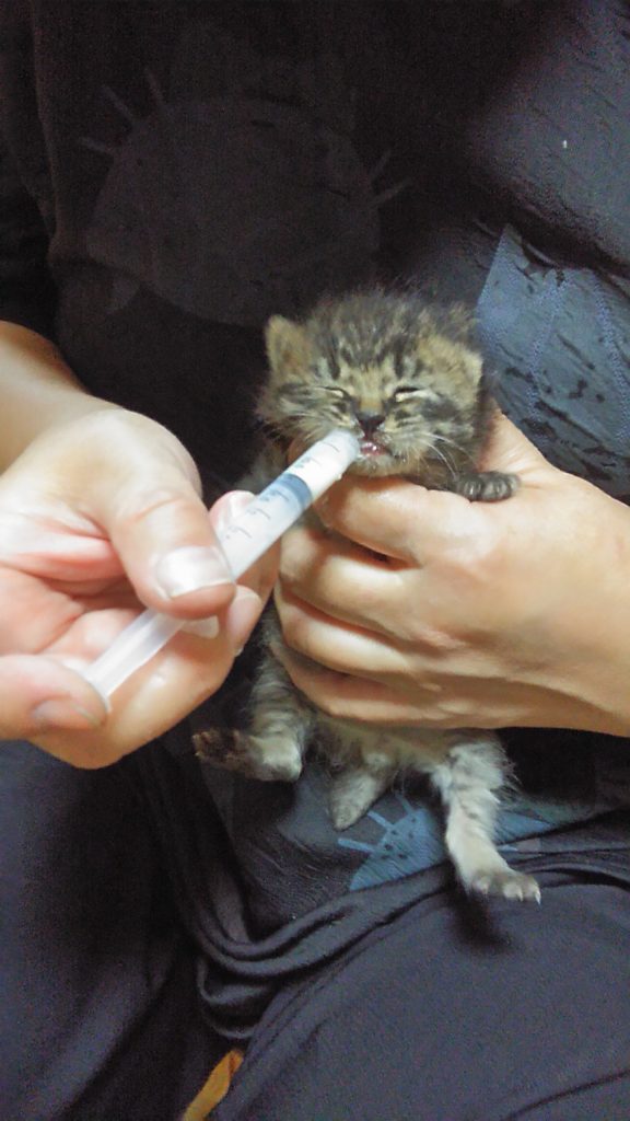 すぐに店に連れていき、きのう帰りに買った注射器でミルクをあげて、おしっこさせました👍