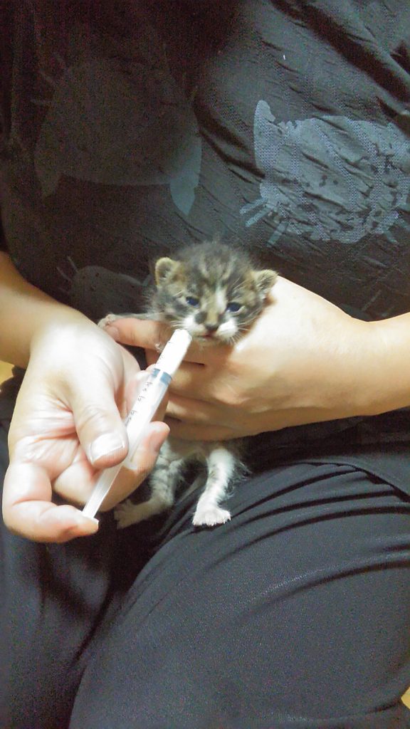 まずはお母さんにエサと4匹を段ボールに入れて部屋に連れて行き、ミルクとおしっこさせました😺