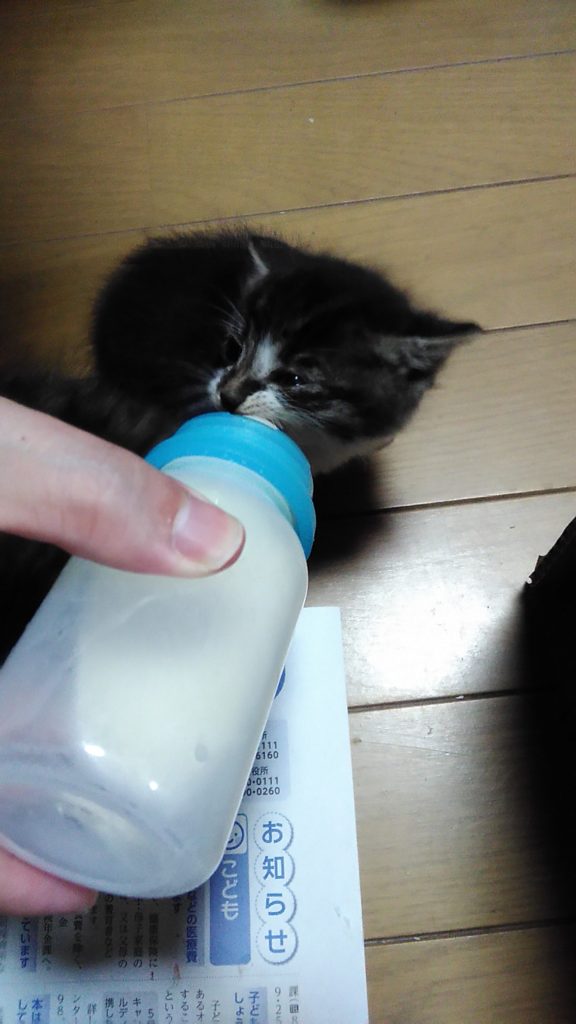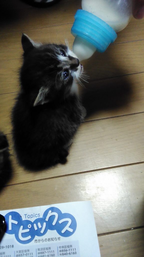体がブチのこぶちは粉ミルクが好みではないようで今日はあまり飲んでくれませんでした💦