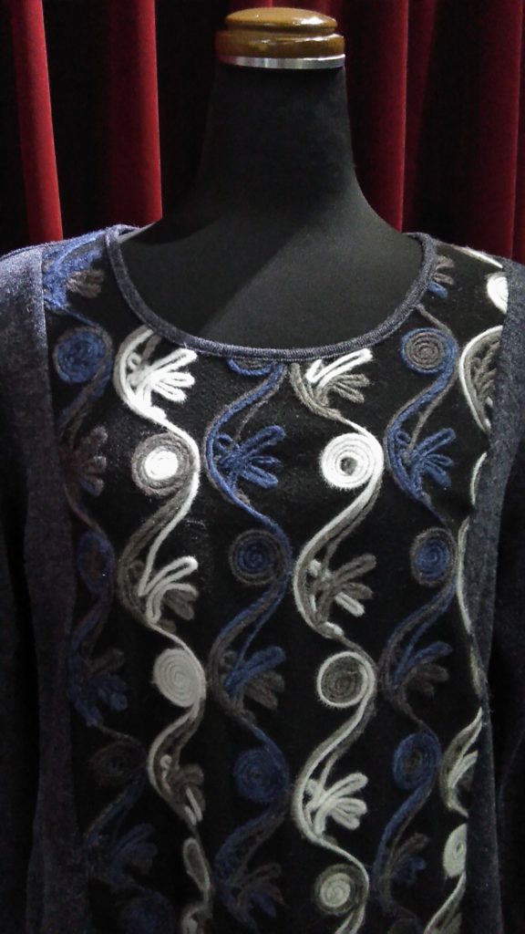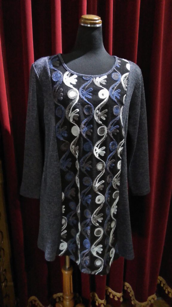 入荷したてのライトグリーン・ダウンフェザーコート、ライトグレー・ハーフコート、グレー×刺繍フラワー・チュニック、ブラック×ホワイト柄・ニットチュニックをご予約頂きました🐶