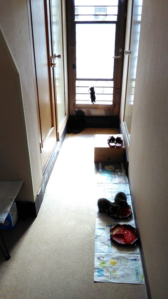 10日(木)は、廊下にある洗濯機置き場ににゃんずのコーナーを作りました😺