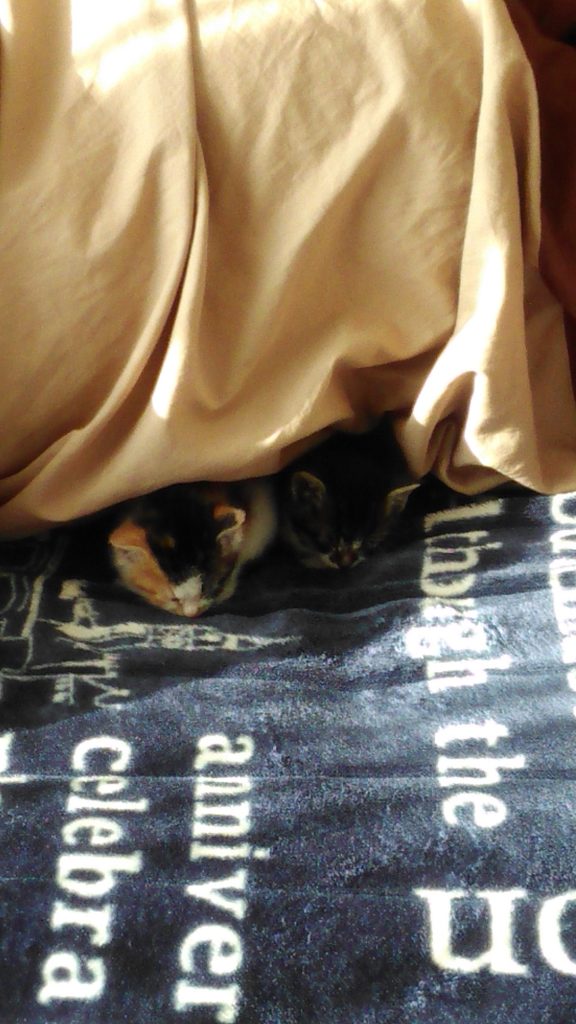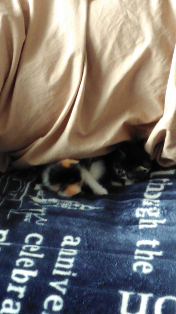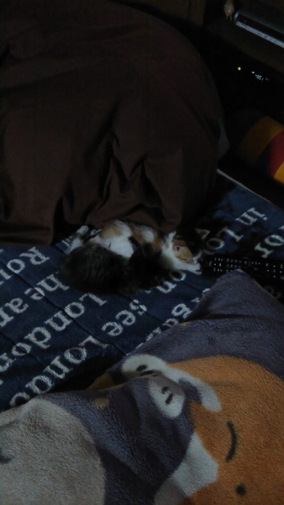 しばらくウロウロしていましたが、私が朝食を作っていたら疲れたのか❓わたしの布団に入ってました😺😺