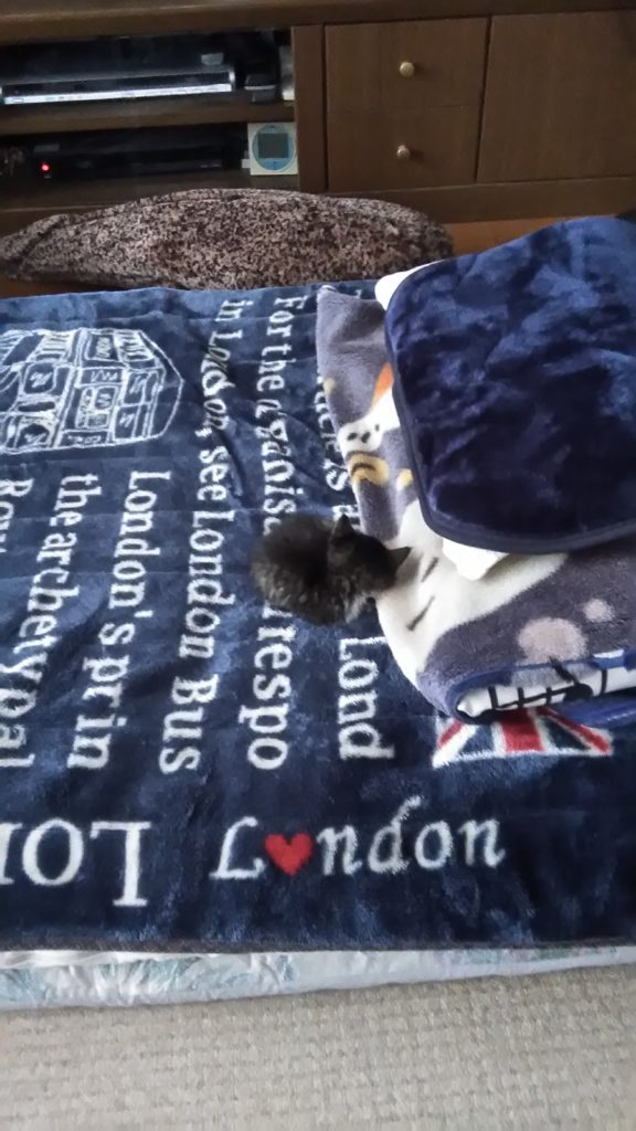 こぶちは、そんな所で寝なくても・・・っていう場所で寝たりしますが、チッチは私の布団かテントで寝ます💤