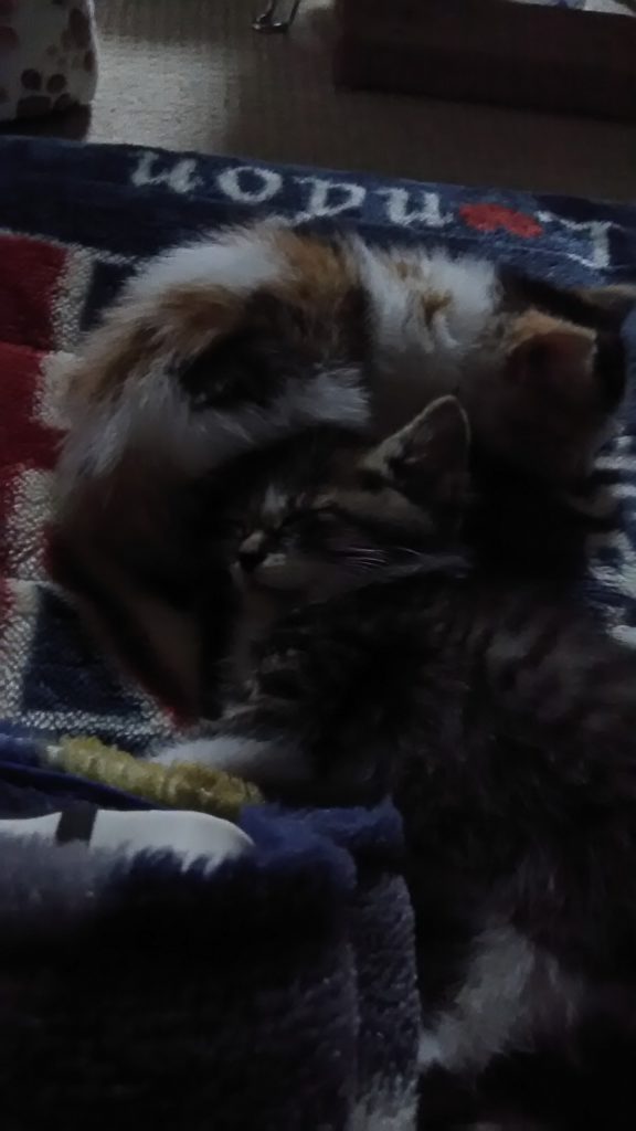 こぶちがチッチをいたわるように寝ています💤💕