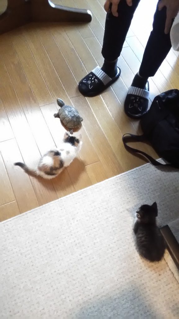 こぶちの方が🐢亀吉に興味あるみたいです💕