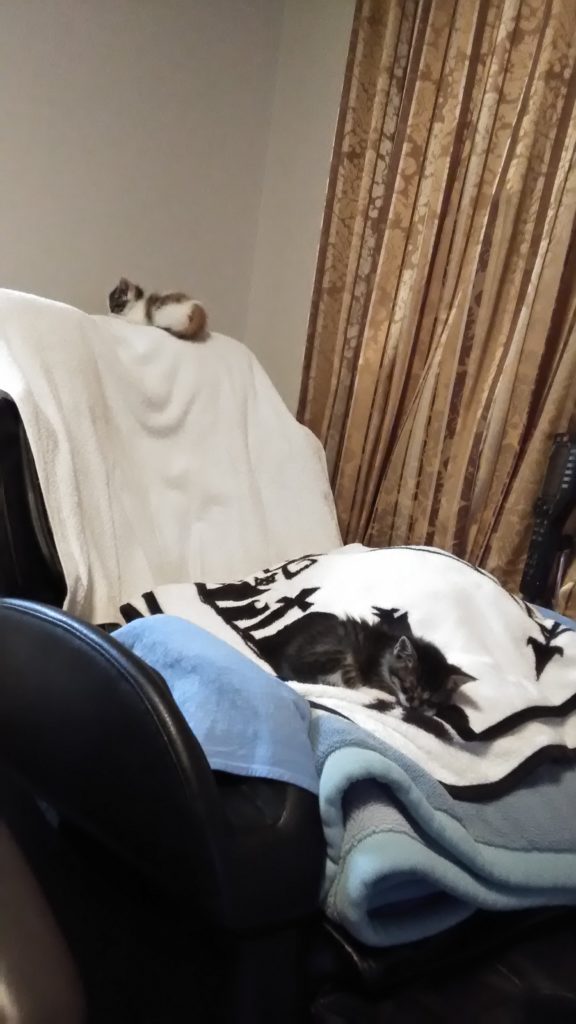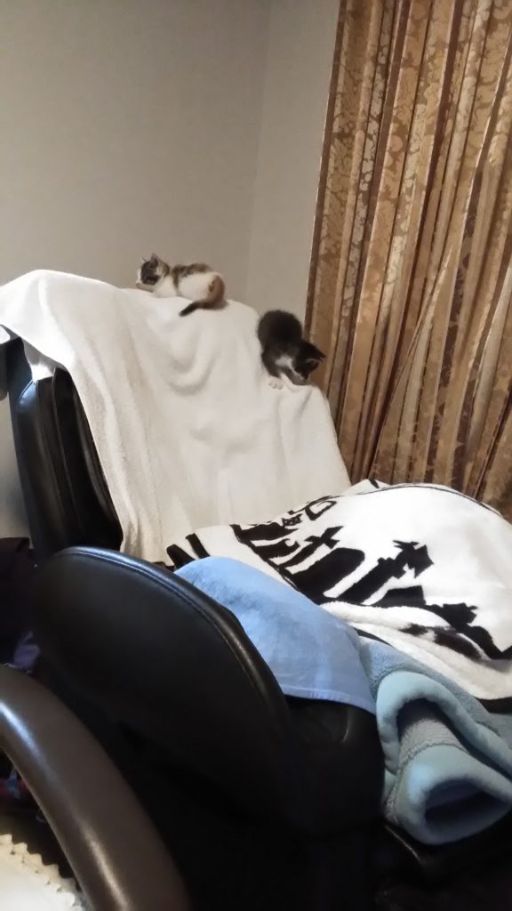 仲良くじゃれあった後は、マッサージチェアで寝てました💤