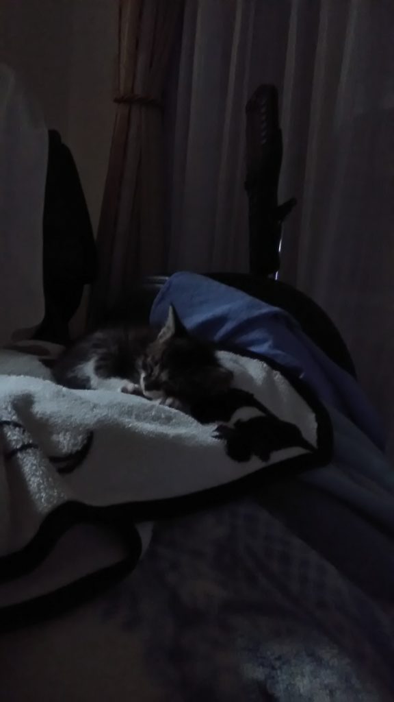夜電気消したらお布団に入ってくるチッチとこぶちも、全然来ずどこにいるのかと思ったらやっぱりマッサージチェア😊