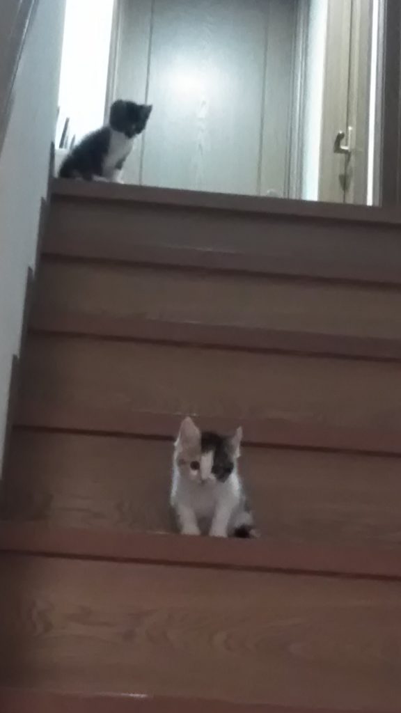 チッチはこぶちより体が少し小さいので、まだ一段も降りる事ができません😢