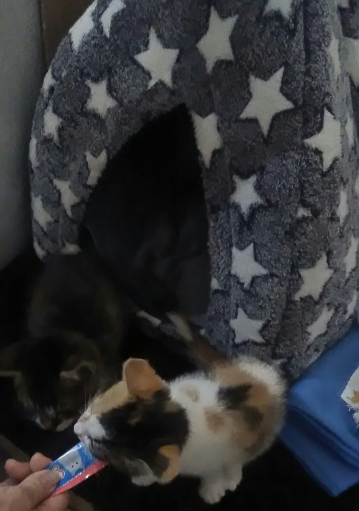 ちゅーるは大好きなので、テントに入ってたチッチとこぶちも出てきて大喜びです💕