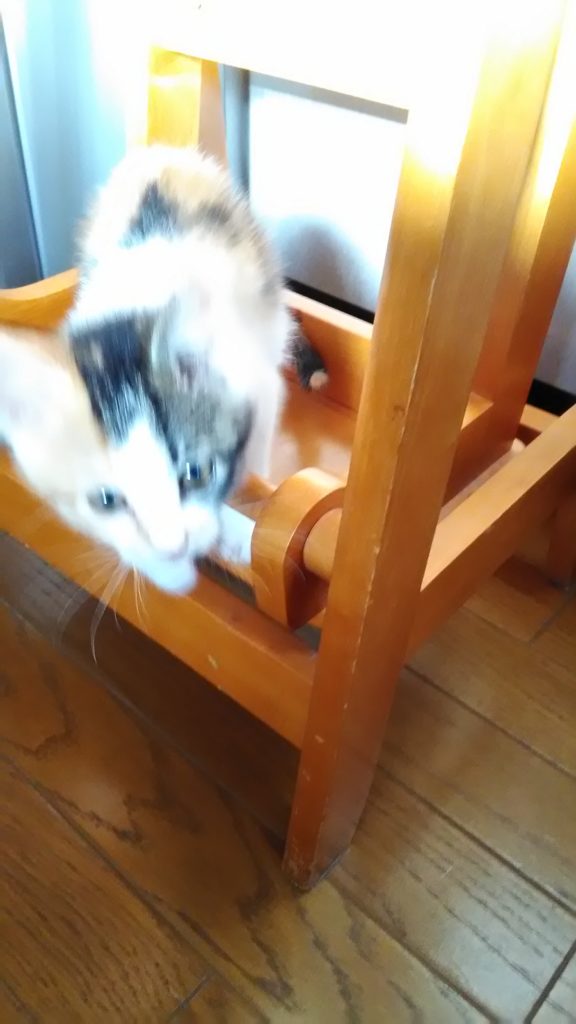 今までミニテーブルの上に飲み物を置いていたのですが上がってマッサージチェアに登っていたのでテレビの棚に置いてましたが、こぼすかもしれないのでもう置けなくなりました😅