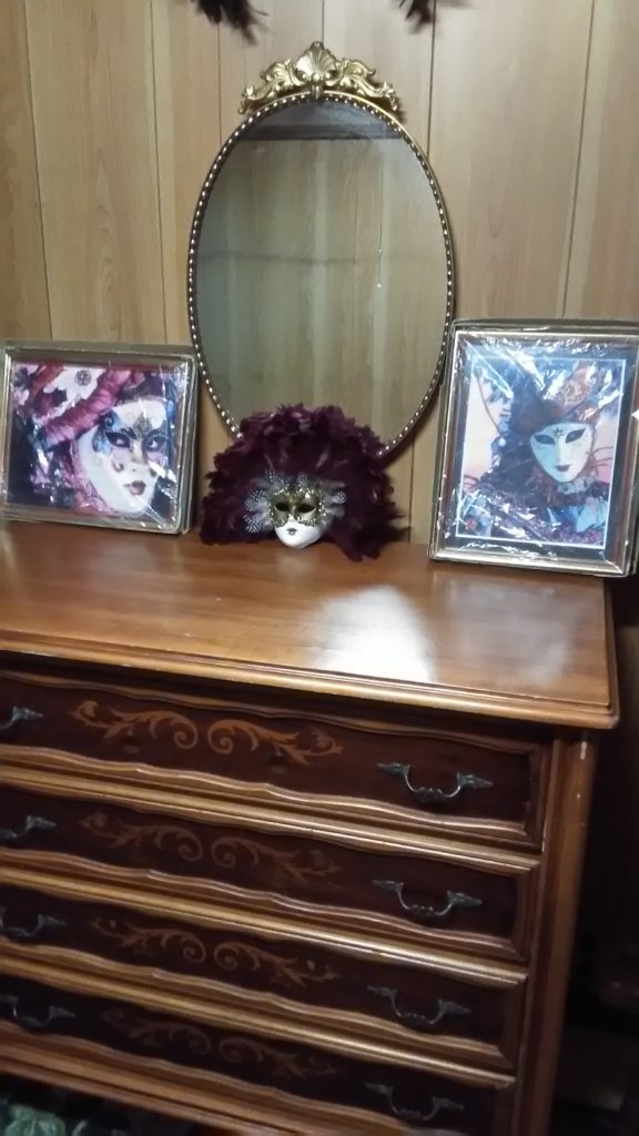 そして、壁に鏡とマスケラを飾りました✨