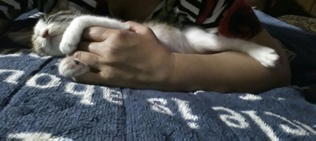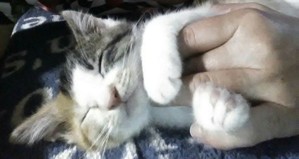 手に抱きついて寝るこぶち💕