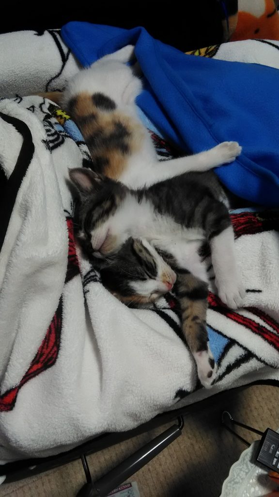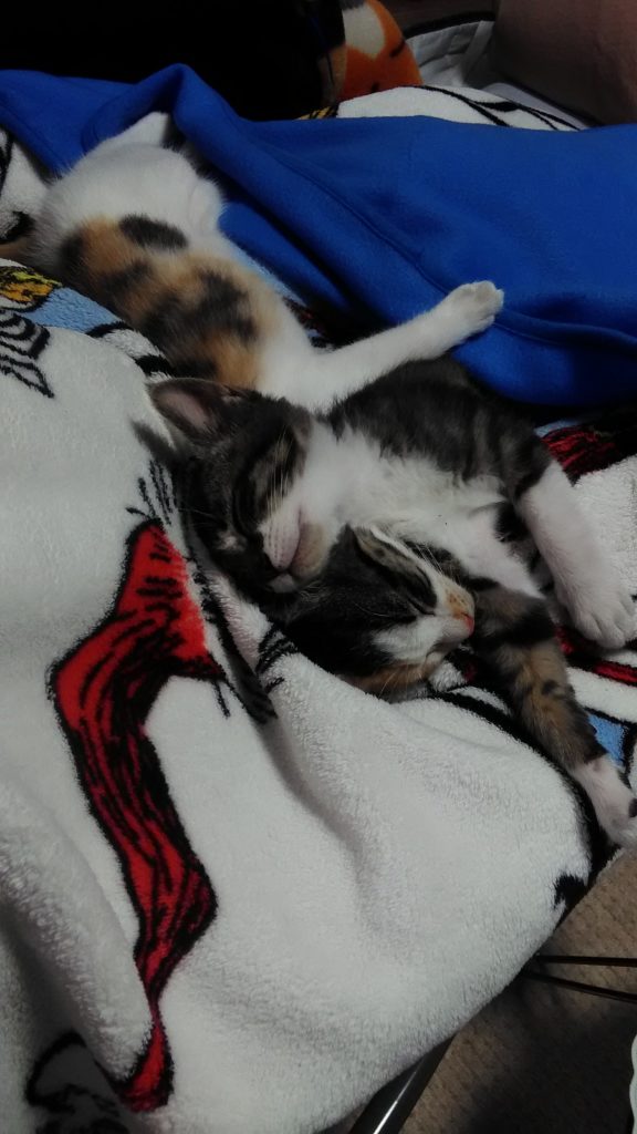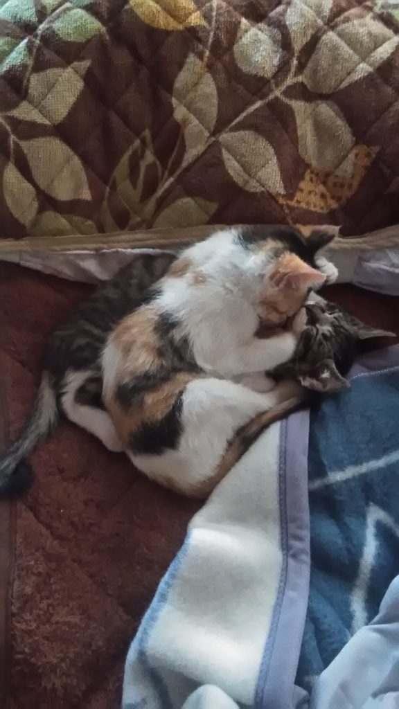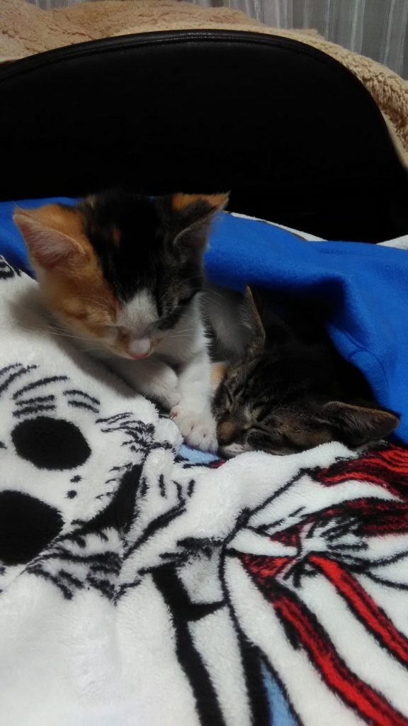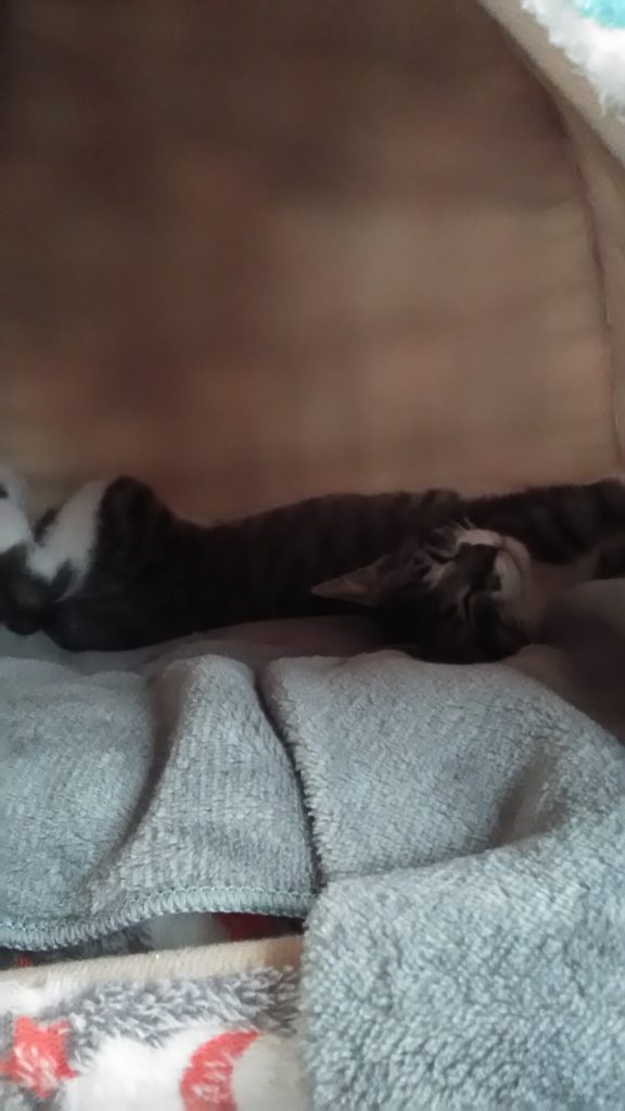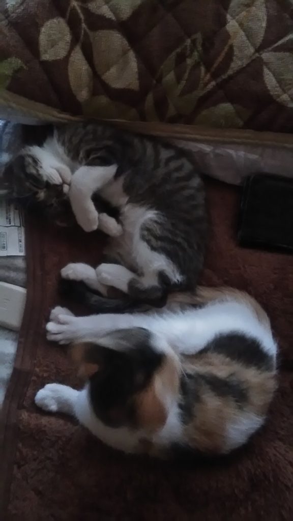 ひっついて寝てると暖かいよね😺😺💕
