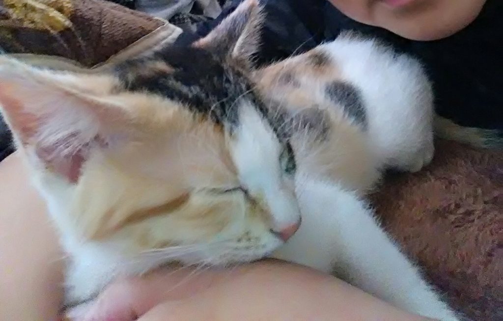 岩槻店にお泊りして、寒かったのか朝から私にベッタリのこぶちっち(チッチとこぶち)♪