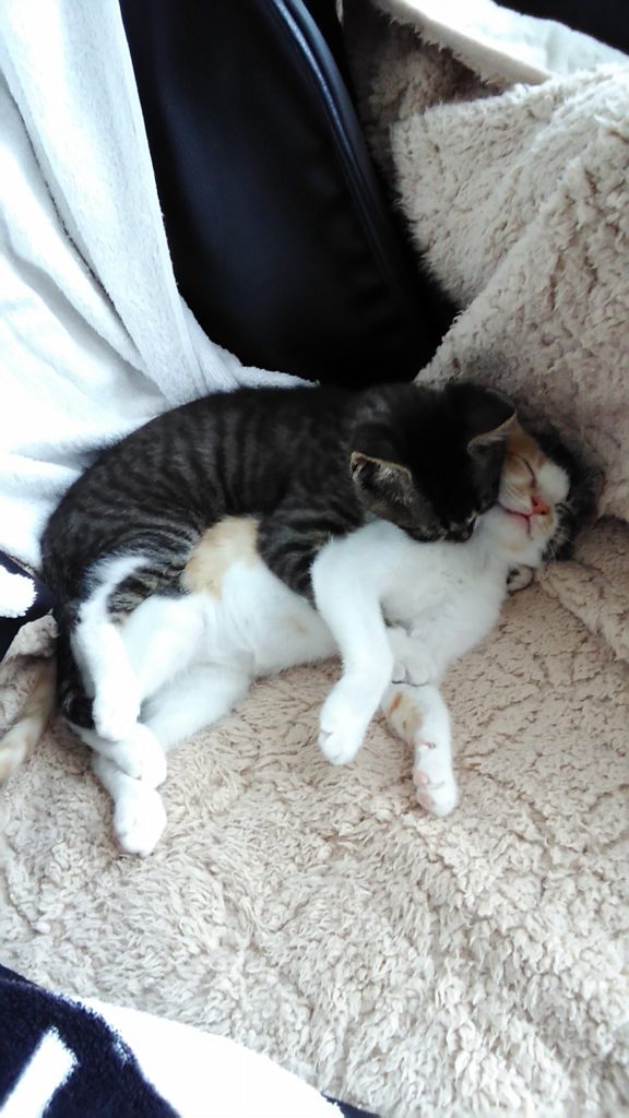 疲れて抱き合って寝るチッチとこぶち😺😺