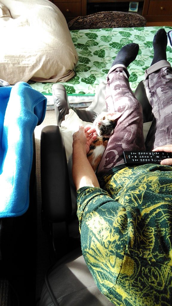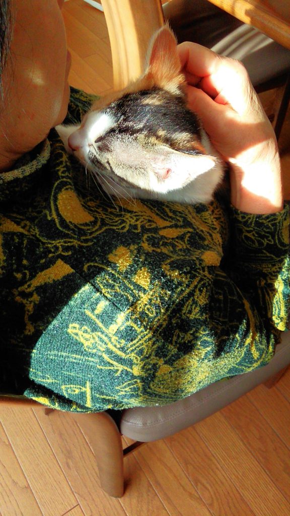 ばぁばがテレビを見ていたら、隙間にやってきたこぶち😺