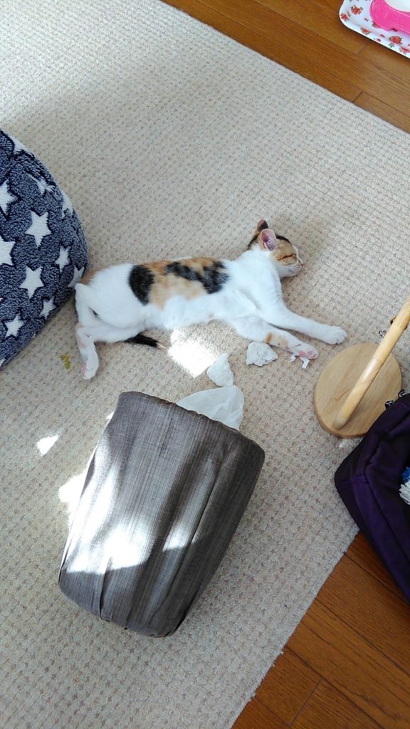 ふと見たら、ゴミ箱倒して大暴れした痕跡が😱💦