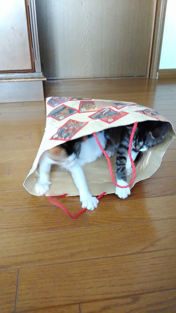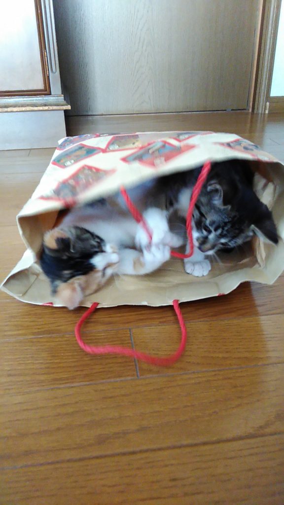 紙袋の中に入って遊ぶこぶちっち😺😺